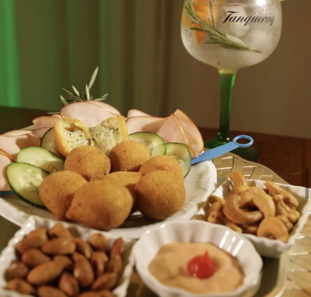 Kibes, Bolinhos de Cupim, Bolinhos de Peixe, Camarão encapotado e pizzas com massas diversas.