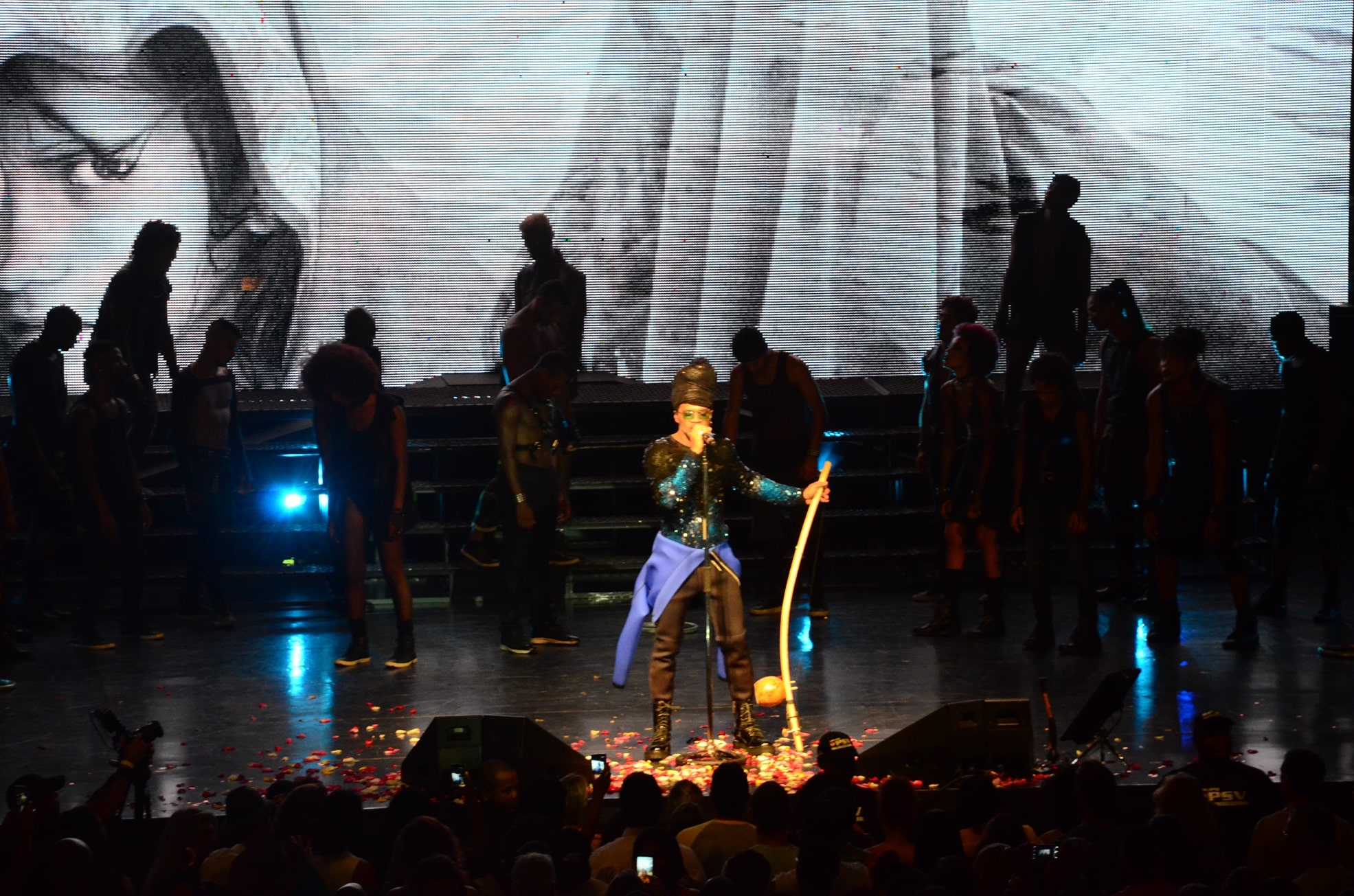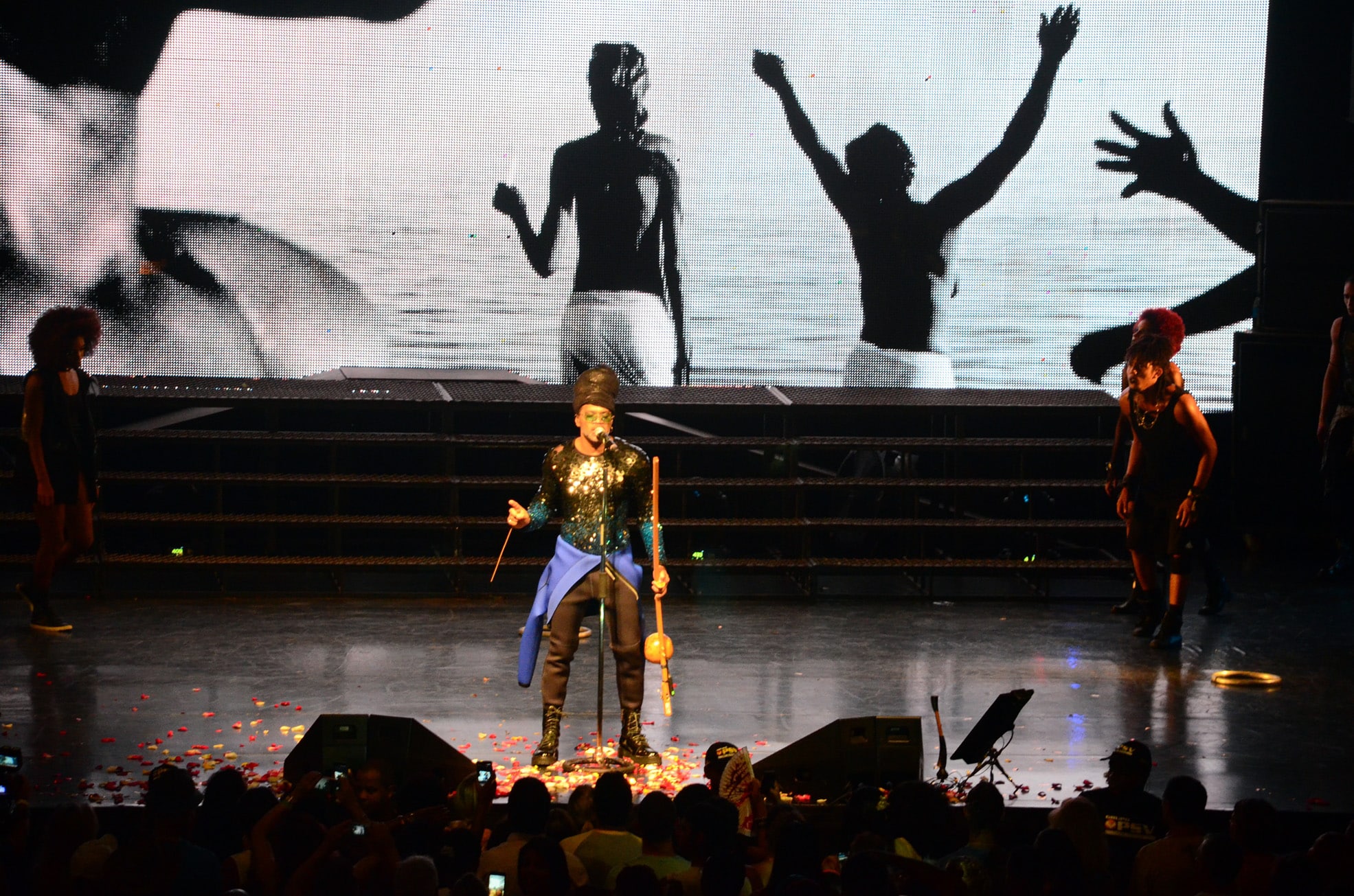 Ao longo do espetáculo, Carlinhos Brown mostra um pouco do que o público vai poder conferir no próximo álbum, ainda sem data prevista para lançamento, que vai contar, por exemplo, com as canções “Pra Vizinha Olhar”, feita em parceria com Arnaldo Antunes, e “Dois Grudados”. Além das novas músicas, o artista também relembra, ao longo das três horas de apresentação, grandes clássicos do seu repertório, como “A Namorada”, “Ashansú” e “Muito Obrigado Axé.