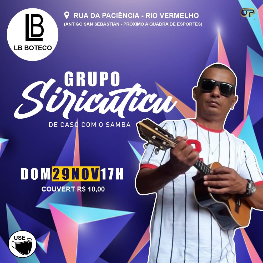 No domingo, pode colocar na agenda show do grupo Siricuticu, com o melhor do samba de raíz a partir das 17h.