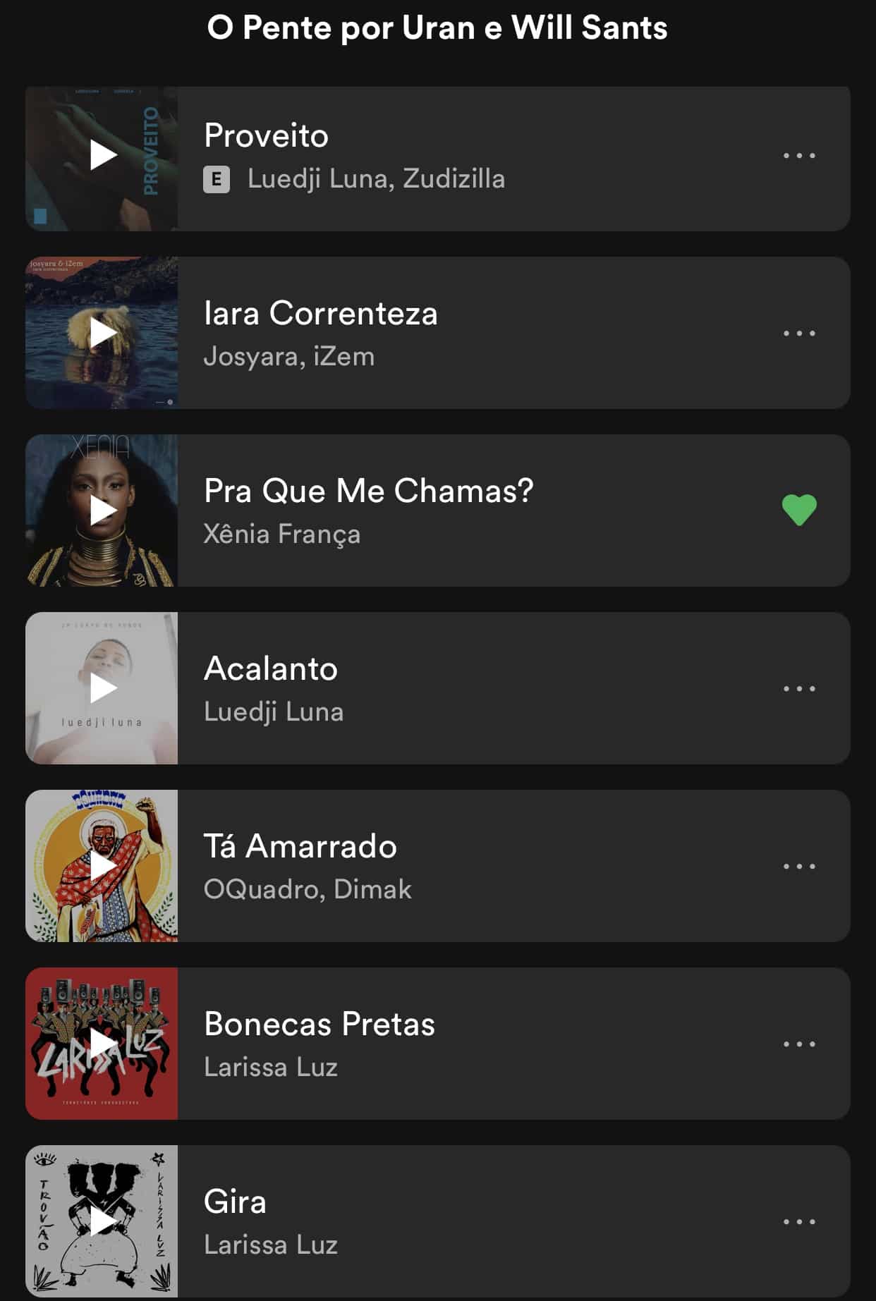 E um desejo de expor o que escuto, disponibilizei o canto de uma galera presente em vibrações como Luiza Lian, Mc Tha, Larissa Luz, BaianaSystem, Letrux, Dona Onete, Academia da Berlinda, Normani, Daniel Ceasar, Solange, Anderson Paak e muita música para alma na playlist #EstiloUran.