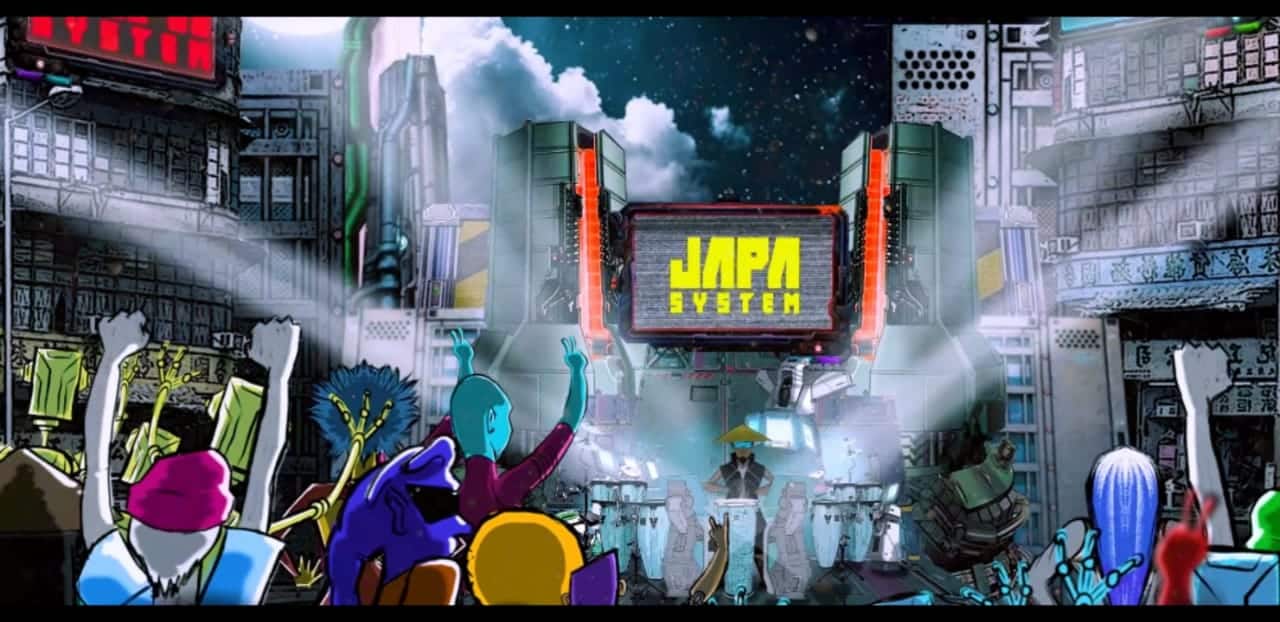 Num futuro distópico, onde a cidade de todos os santos se encontra totalmente povoada por espécies variadas e arquitetura cibernética, resultado do advento das mudanças climáticas no planeta, Japa System vem à terra para mostrar que a música sobrevive a qualquer situação.Ele viaja com sua tecno percussão( Nave System) pelos planetas, fortalecendo as raízes africanas com sua potente música.” descreve Pablo Pitombo, designer responsável pela animação do artista.
