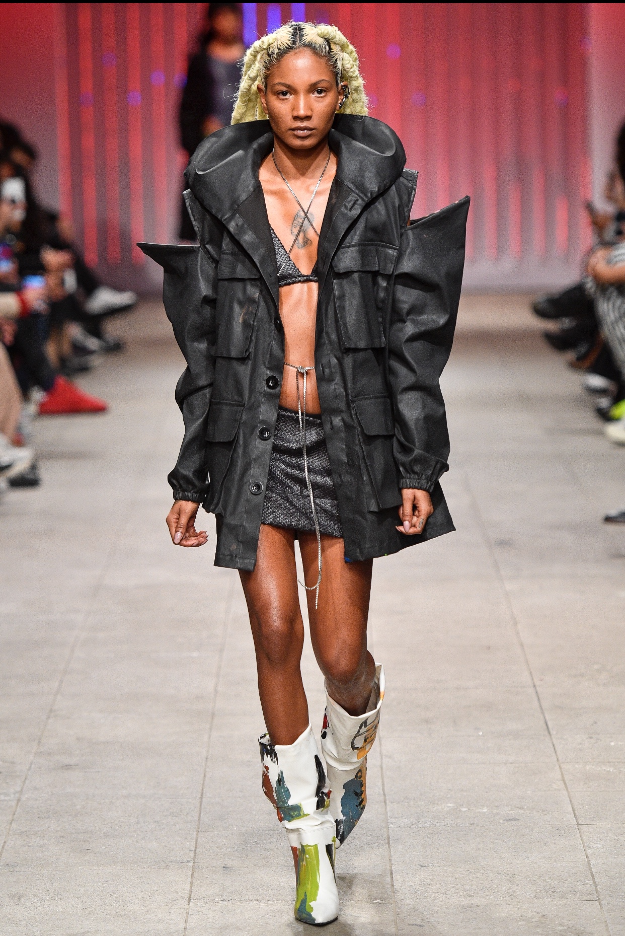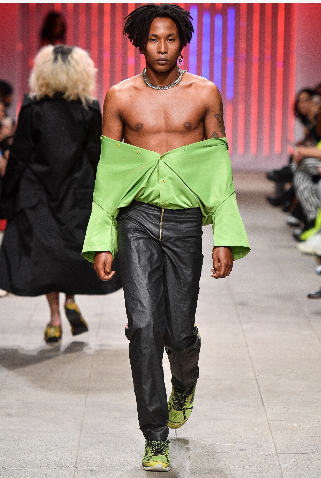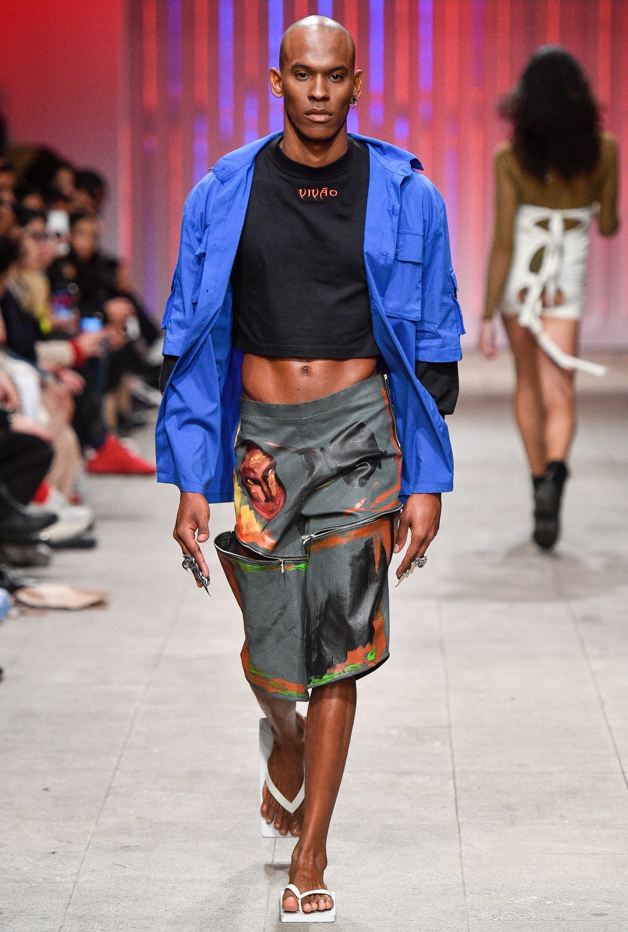 “Foi uma experiência única de imersão no mundo da moda, um mundo que eu não ocupava e existia uma certa distância, mas que através das midias sociais, desse novo mundo que vivemos com essa imersão tecnológica tão forte, conseguimos quebrar padrões e ocupar espaços que até então não seriam possíveis.O convite veio através do Instagram, conheceram meu trabalho e decidiram me convidar, montei a coleção inspiradora no filme “Blade Runner 2049”. Um filme que fala sobre um futuro caótico e grotesco, onde são criados andróides, máquinas mais próximas dos seres homens, inclusive no quesito sentimento, mas que são destinados a fazer somente uma atividade, trabalhos escravocatas. Toda sociedade considerada peso era colocada à margem da sociedade e sentenciados a se esconder como as travestis e os não binários. A ideia era falar desses corpos invisibilizados, por isso fiz questão de chamar os amigos, pessoas que talvez não teriam oportunidade de apresentar os seus corpos maravilhosos em lugares tidos como regulamentadores dos padrões de moda” relato de Vivão ao Site UR.